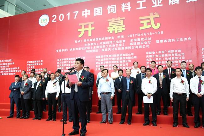 天馬科技訊 4月18日-19日,由中國飼料工業(yè)協(xié)會、全國畜牧總站主辦,福建天馬科技集團股份有限公司(以下簡稱“天馬科技”)特別贊助的行業(yè)盛會——2017中國飼料工業(yè)展覽會暨畜牧業(yè)科技成果推介會在福建省福州海峽國際會展中心隆重舉行。農(nóng)業(yè)部副部長于康震,農(nóng)業(yè)部原副部長、中國飼料工業(yè)協(xié)會顧問高鴻賓,中國飼料工業(yè)協(xié)會會長、中國工程院院士李德發(fā)等領(lǐng)導,以及包括天馬科技、海大集團、大北農(nóng)、新希望六合等上市公司在內(nèi)的近400家國內(nèi)外公司參展和數(shù)萬名客商代表、行業(yè)人士參加展會。中國飼料工業(yè)協(xié)會副會長單位、本屆唯一的特別贊助單位天馬科技,以安全、高效、環(huán)保的特種水產(chǎn)飼料及技術(shù)解決方案亮相此次展會,吸引了來自全國各地的客戶,上下游合作伙伴及同行的目光。中國飼料工業(yè)協(xié)會副會長、天馬科技陳慶堂董事長應邀出席展會,并在4月18日舉行的展會開幕式上代表全國飼料企業(yè)致辭。