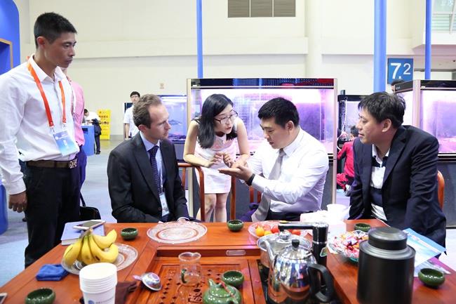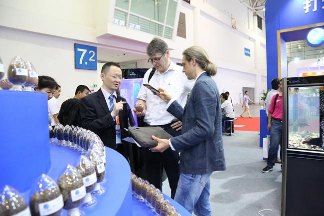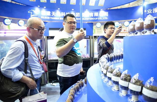 本次展會,天馬科技展館一開館,展臺前就熱鬧非凡,人頭攢動。天馬科技展館設(shè)計獨到,簡潔明快的建筑線條,海洋藍配上高效節(jié)能、環(huán)保、安全、舒適的綠色照明體系,充滿活力的鰻魚、石斑魚、大黃魚、甲魚、龜、虹鱒等各類特種水產(chǎn)品形象展示無不彰顯了集團高端、大氣的企業(yè)形象,讓天馬科技展館賺足了眼球,成為全場最“吸睛”的展位。各大媒體記者,各大參展商、供應商、客戶,以及觀眾紛紛在天馬科技展館駐足流連,并不時向現(xiàn)場的天馬科技工作人員咨詢產(chǎn)品相關(guān)情況。
